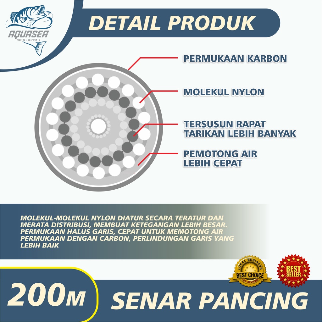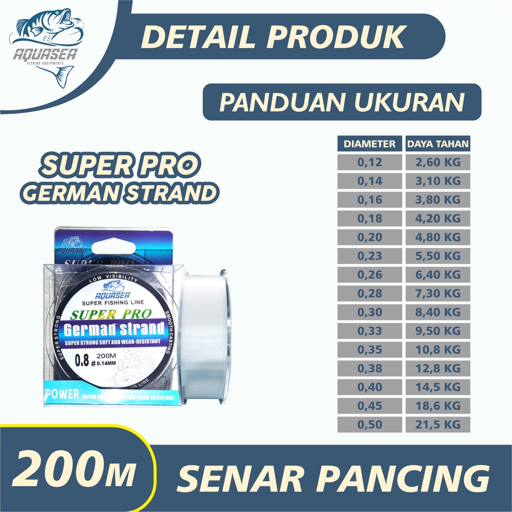 AQUASEA Tali Pancing Putih Germany Fishing 200m Pancing Invisible Bahan Nilon Tahan Lama Panjang