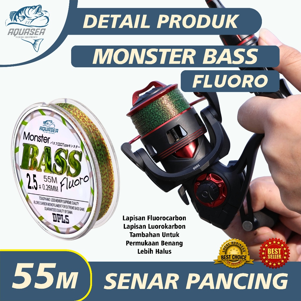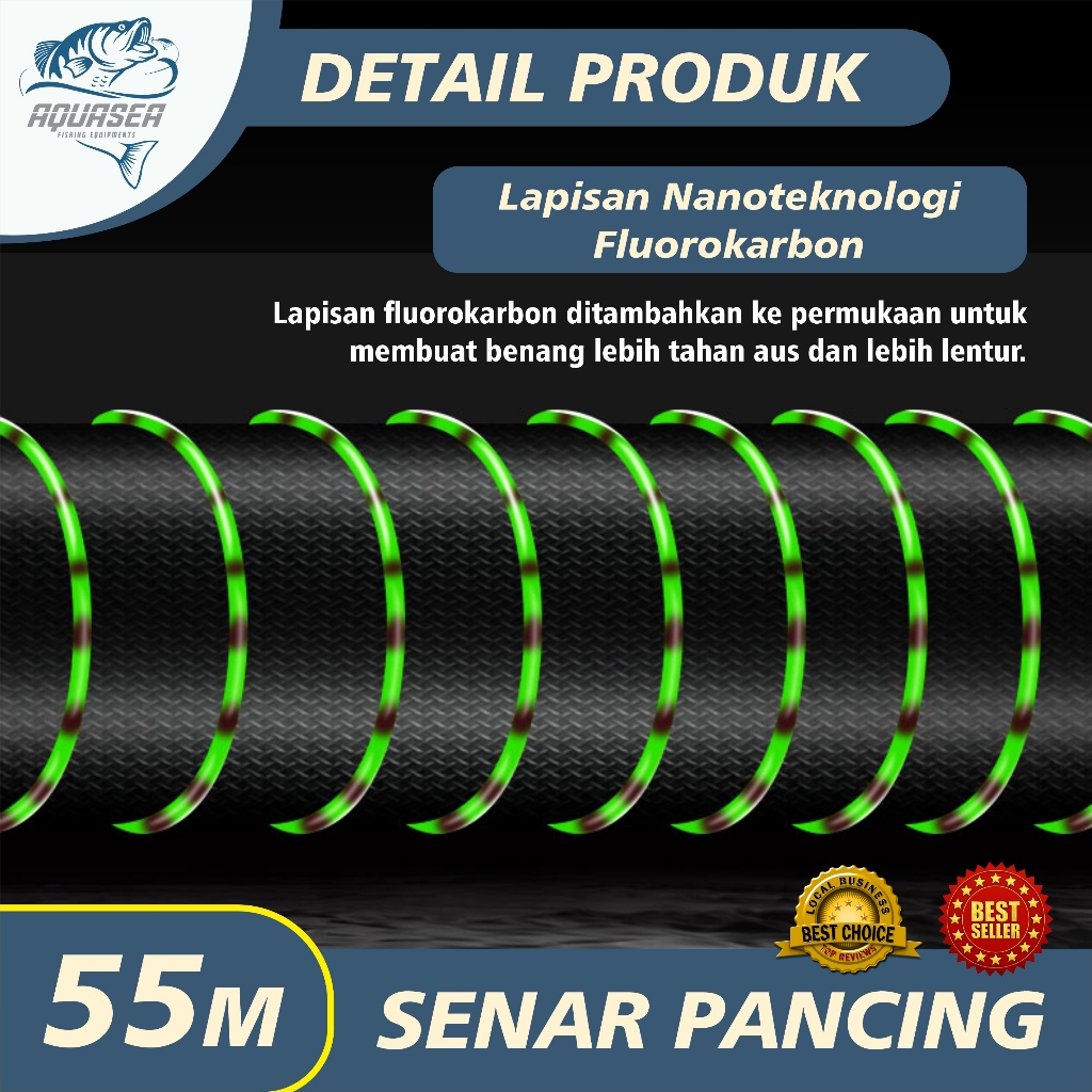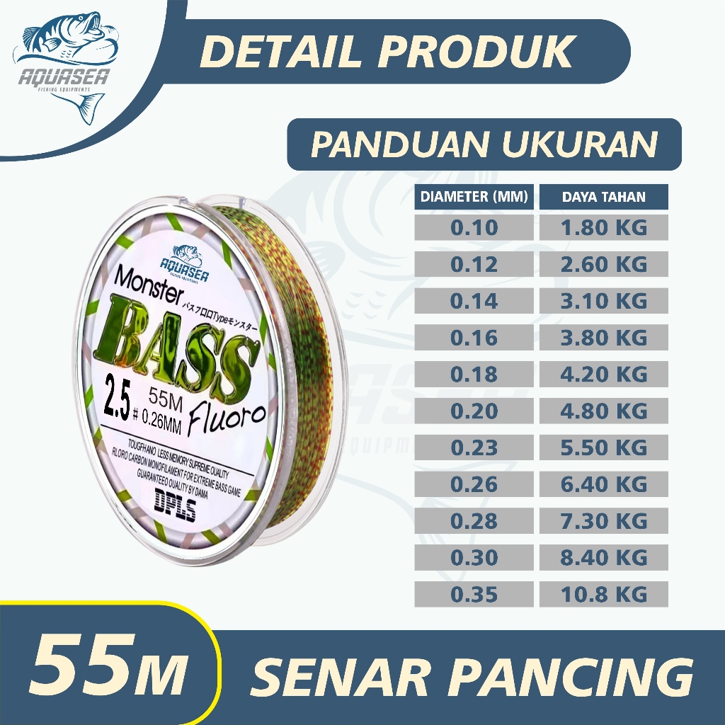 AQUASEA - Tali Pancing Bass FLUOROCARBON 55M Warna Hijau Lumut Senar Pancing
