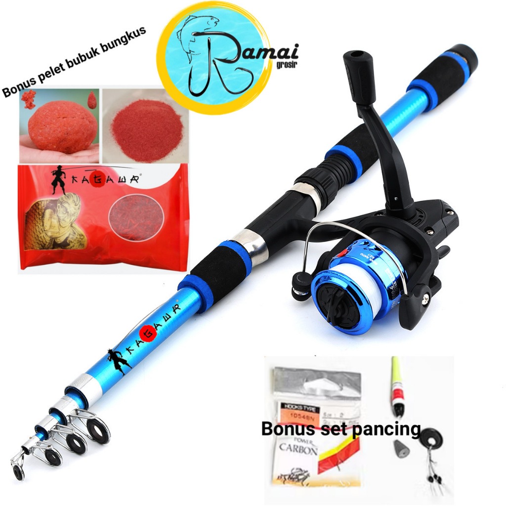 Set Paket Joran Pancing Antena Carbon Kagawa Antena lengkap Pelet tegek Reel Pancing Rill Telescopic style
