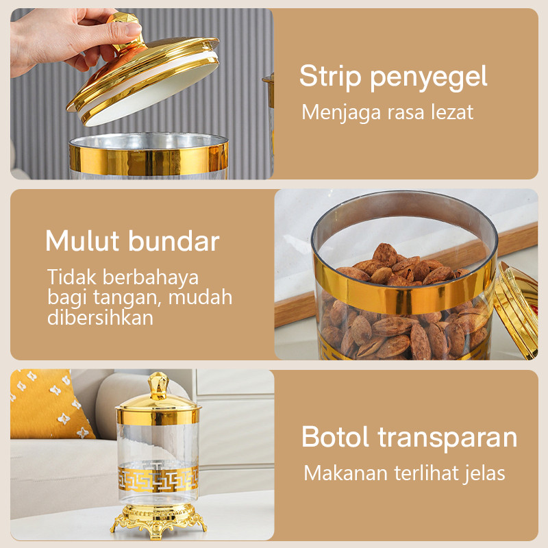 【3 Pcs 】Toples Aklirik Kedap Udara Toples Mewah Aesthetic Toples Snack Toples Gagang Set Stoples Jars Penyimpanan Maka