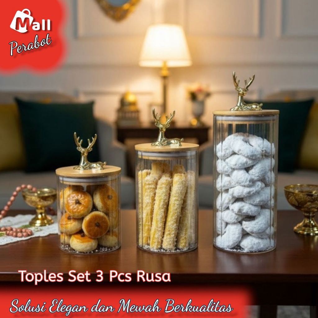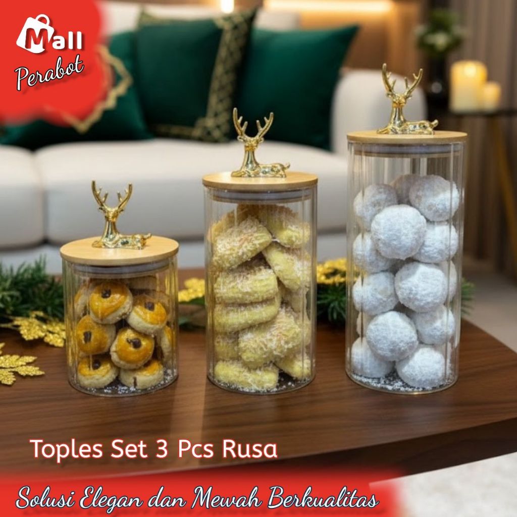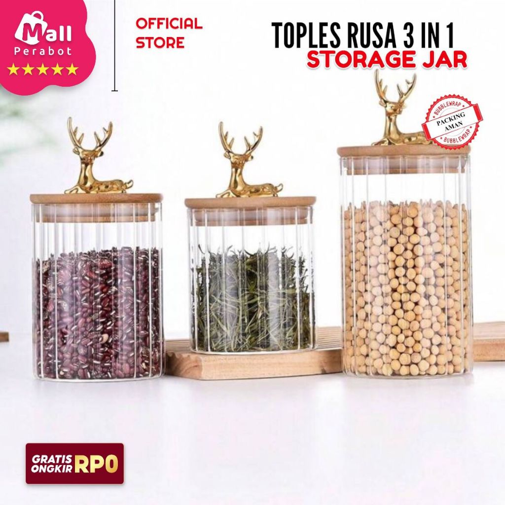Mall Perabot | Toples Rusa 3 In 1 Storage Jar Kaca Tempat Penyimpanan Snack Mewah | Serbaguna | Toples Kue Lebaran