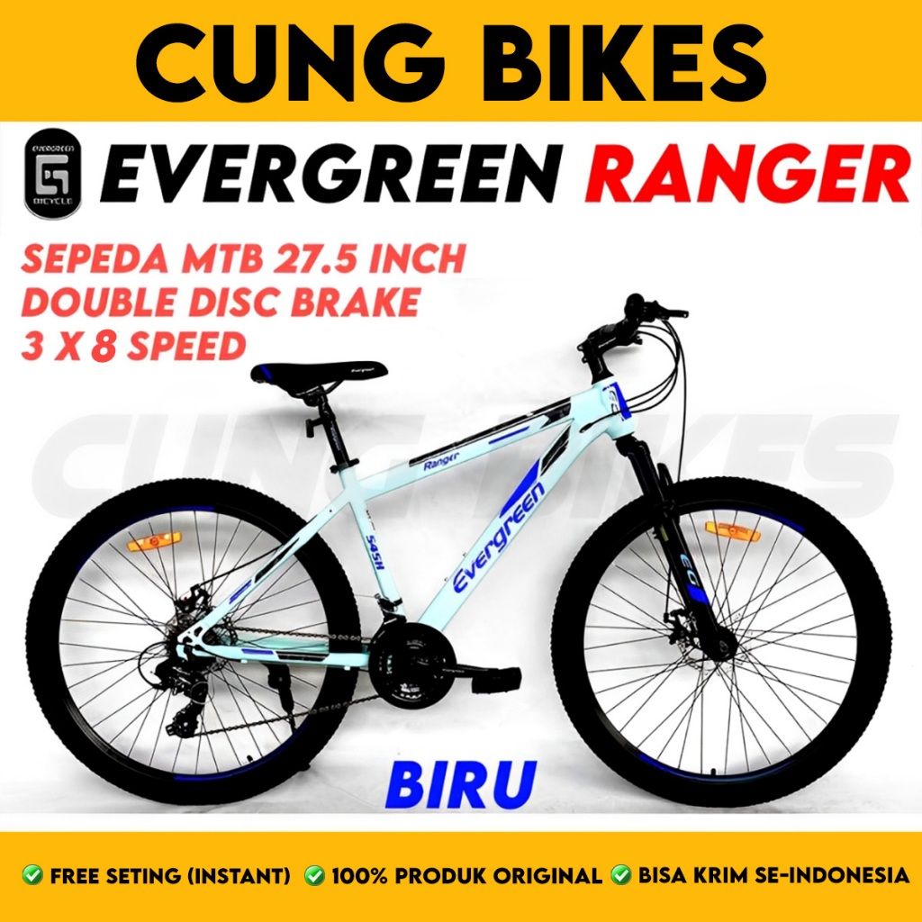 Sepeda Gunung Mtb 27.5 Inch Evergreen Ranger 545 Double Disc Brake 24 Speed