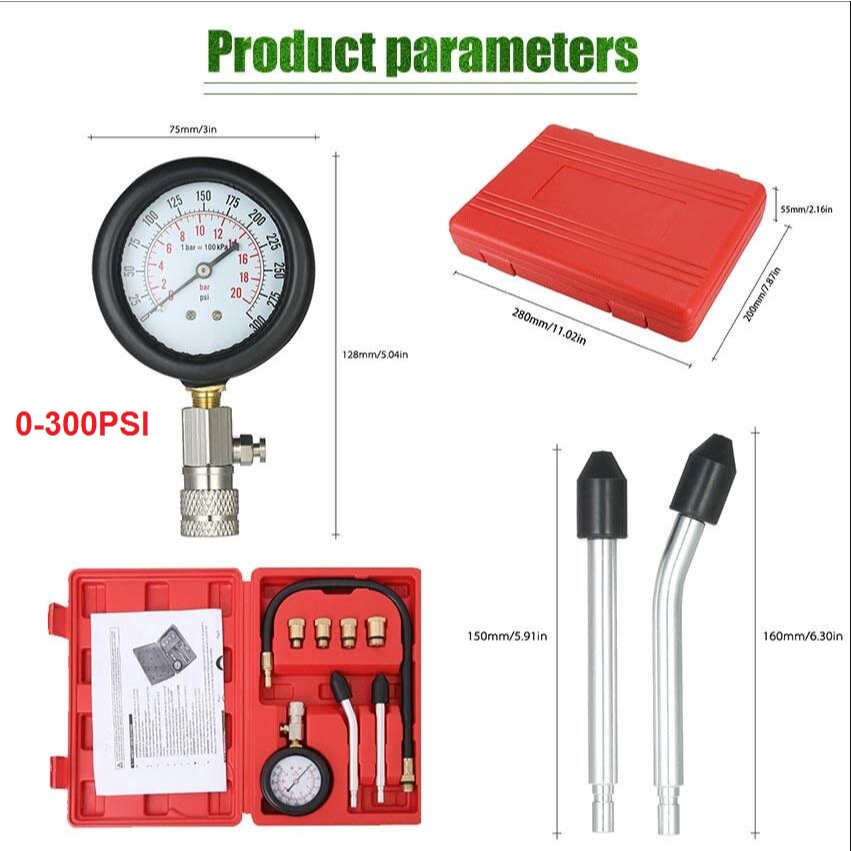 8Pcs Set Tester Kompresi Silinder Mesin Mobil Alat Pengukur Tekanan Gas Cylinder Compression Tes Kebocoran 0-300PSI Gasoline Engine