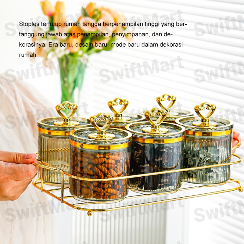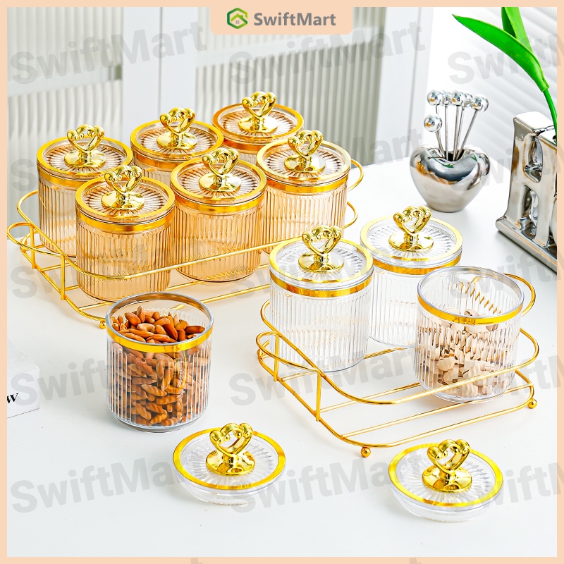 Toples Set Isi 6 Set Toples Penyimpanan Makanan Dengan Nampan / Snack Tray Akrilik / Toples Nampan Makanan Ringa