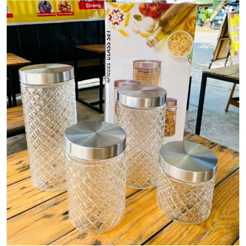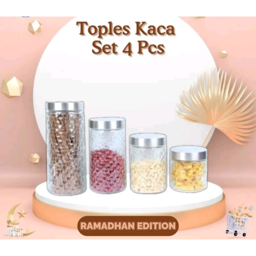 N5 Toples Kaca Set Isi 4Pcs Toples Kue Lebaran Toples Diamon Isi 4