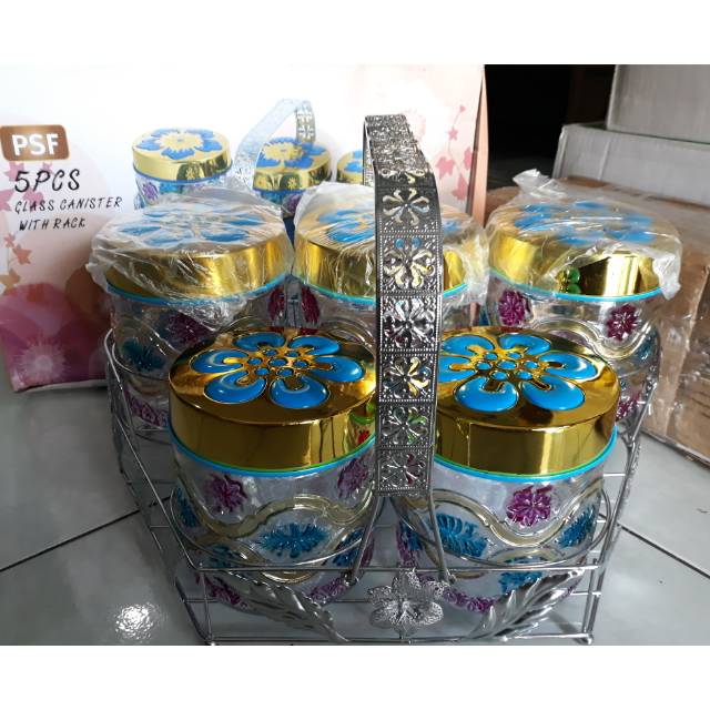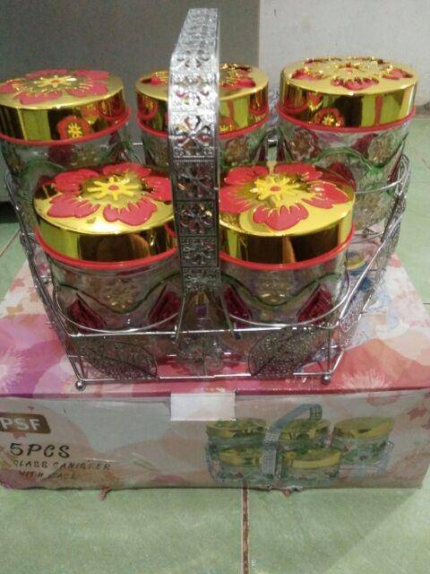 [3Kg] Toples Kaca Serbaguna + Keranjang ( Toples Lebaran) 5 Pcs