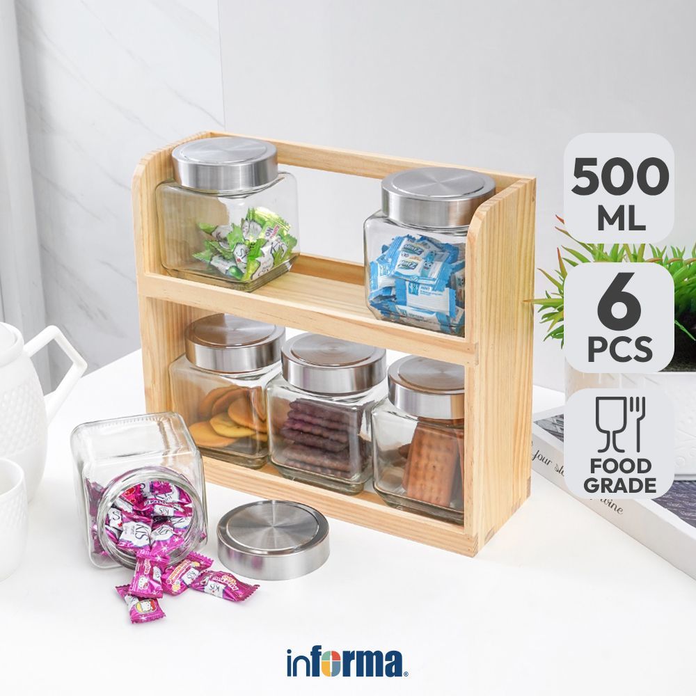 Informa 500 Ml Set 6 Pcs Caston Stoples Kaca Jar Tempat Simpan Snack Dan Permen Setoples Toples Serbaguna Perlengkapan D
