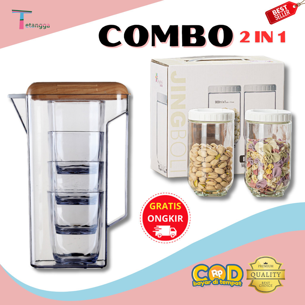 Exclusive Combo Lebaran 2In1 Toples Kaca Lebaran Kue Set Isi 2+Teko Air Panas Dan Dingin Set Dengan Cangkir