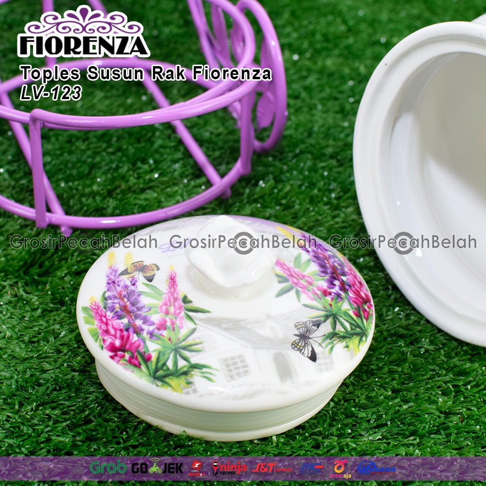 Toples Kue Makanan Permen Keramik Rak Set Motif Bunga Fiorenza Lv-123