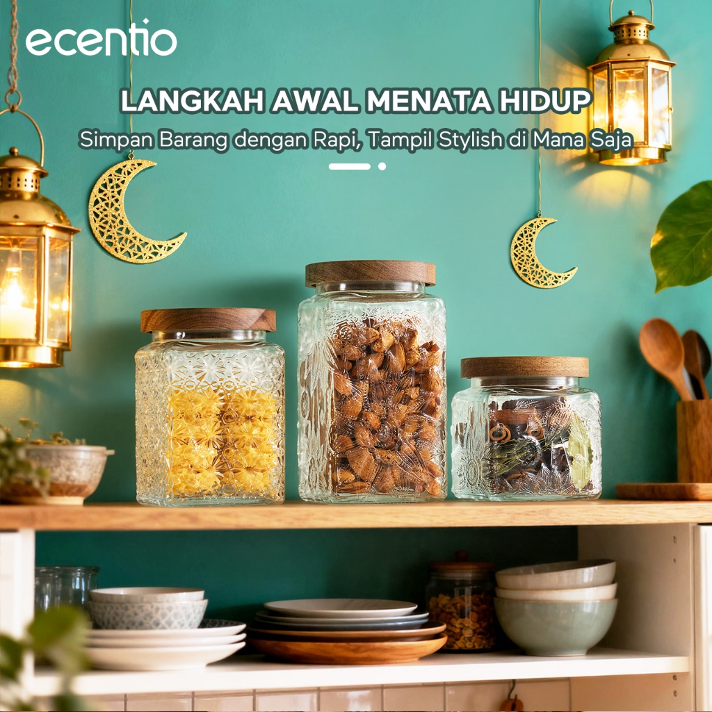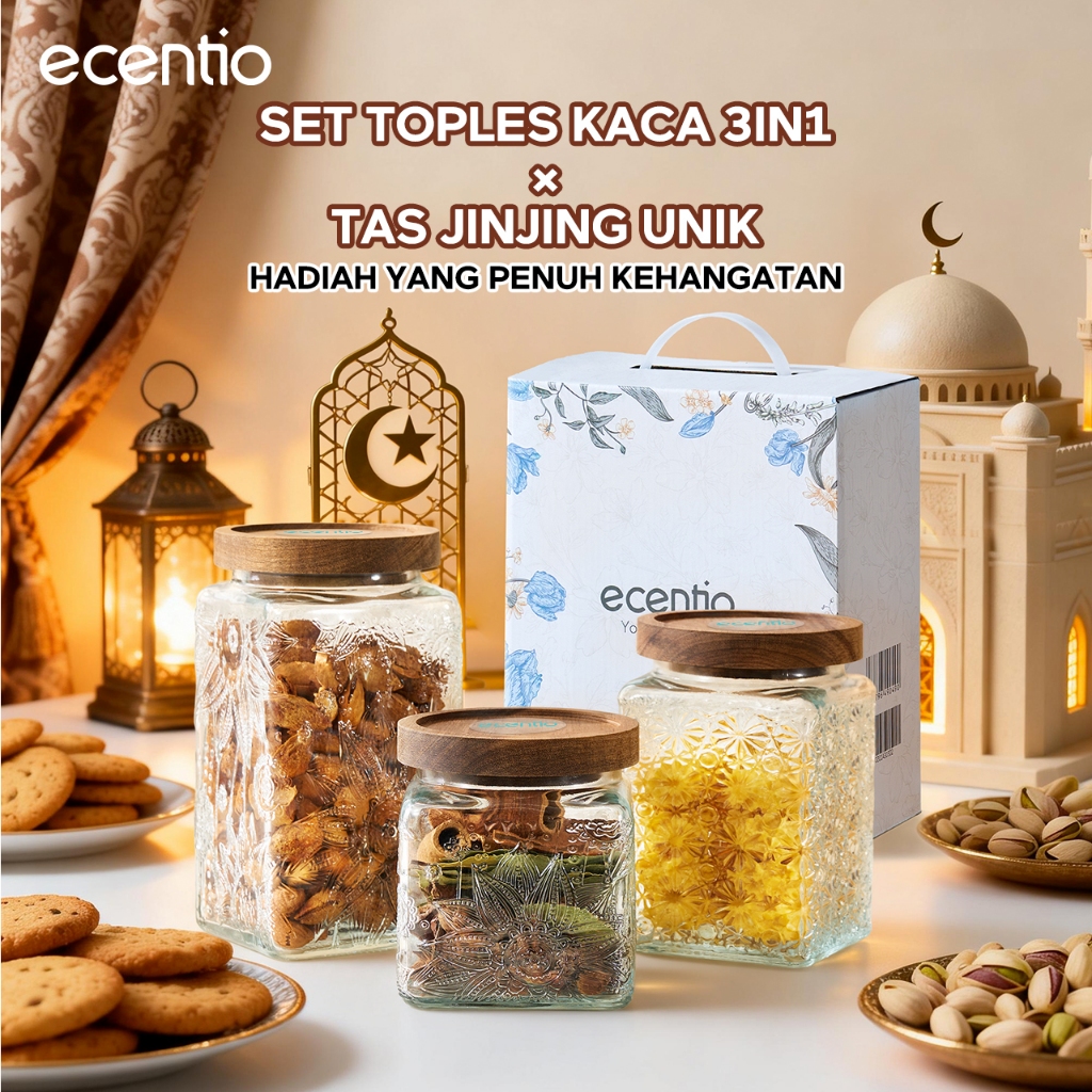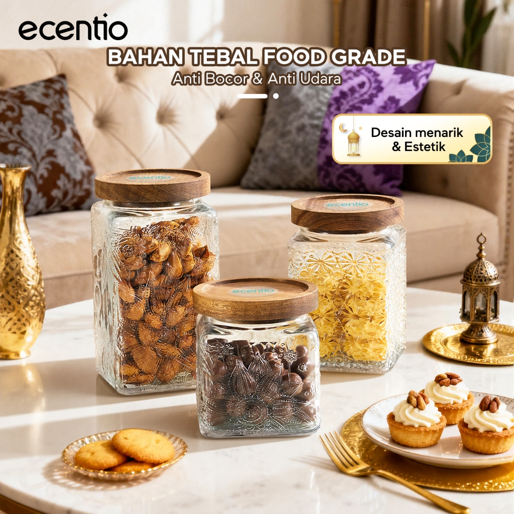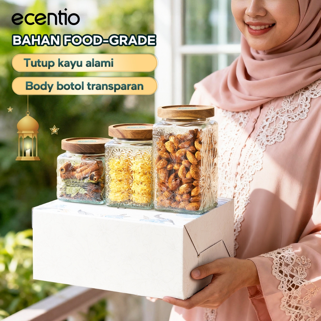 [ 4 Free Gift] Ecentio Toples Lebaran Toples Kaca Toples Kaca Kedap Udara Toples Kue Kering Food Container Toples Kedap