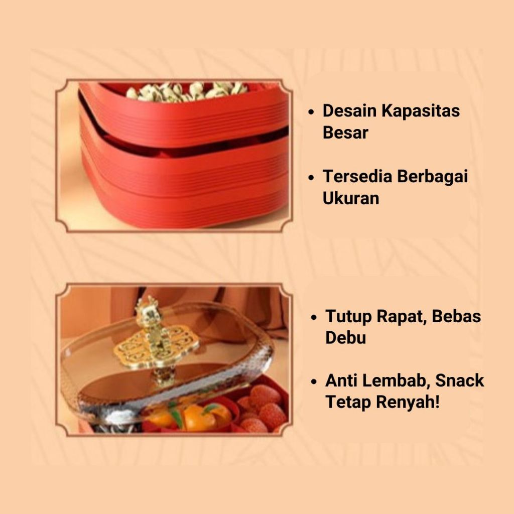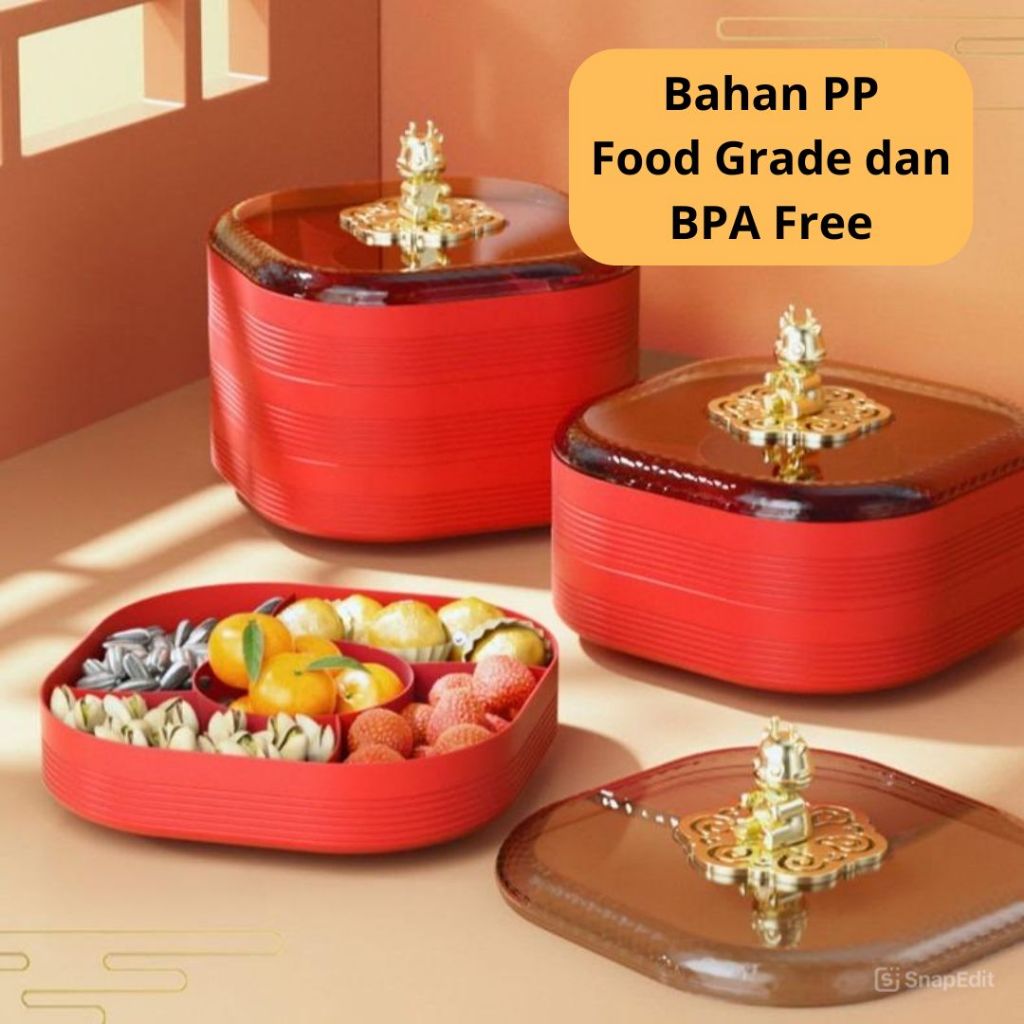 Toples Kue Permen Mewah Lapis Tiga Desain Imlek Pegangan Naga Warna Merah Dan Oranye Wadah Tempat Makanan Snack Buah Cok