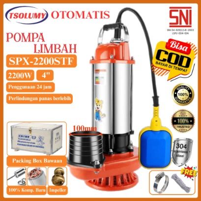 Tsolumy Pompa Celup Air Kotor Otomatis SPX-2200STF Pompa Kolam Ikan Pompa Banjir Pompa Lumpur 100mm