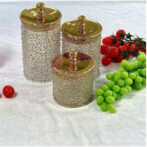 3Pcs Toples Kedap Udara Akrilik Toples Toples Kue Lebaran Toples Aesthetic Toples Lebaran Cantik Set Mewah Toples