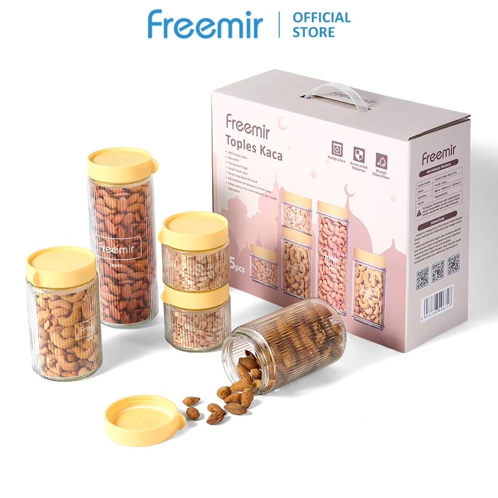 Freemir Toples Kue Lebaran Kaca Set 5 Pcs Anti Serangga Hadiah Hampers Toples Estetik Toples Lebaran