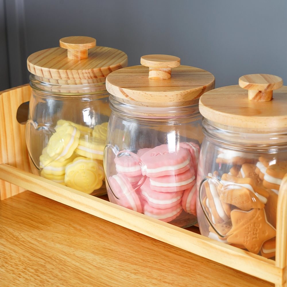 Informa 700 Ml Set 3 Pcs Coco Stoples Kaca Dengan Nampan Jar Tempat Simpan Snack Dan Permen Setoples Toples Serbaguna Pe
