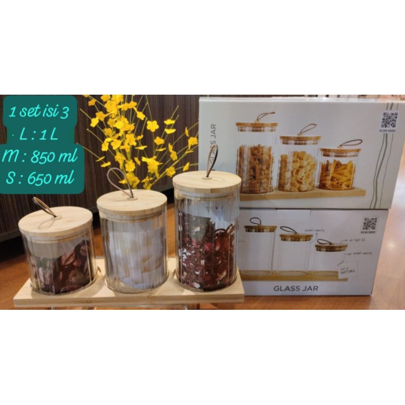 Whitney Glass Jar Set Of 3 With Tray/Toples Kue Aesthetic Informa/Toples Kopi Gula Teh