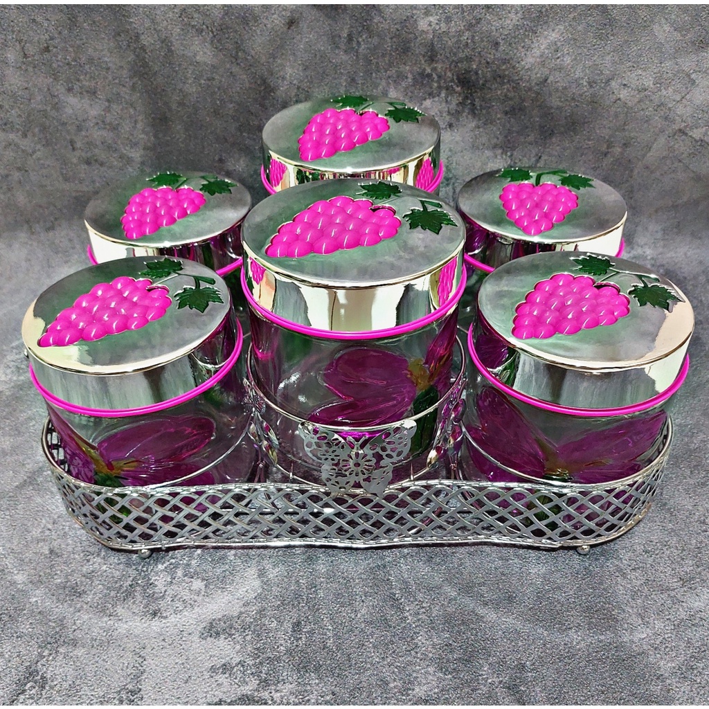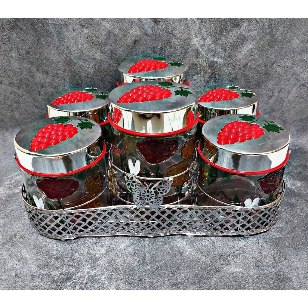 Toples Kue Cantik Set Isi 6 Kaca + Keranjang Silver (Toples Lebaran)