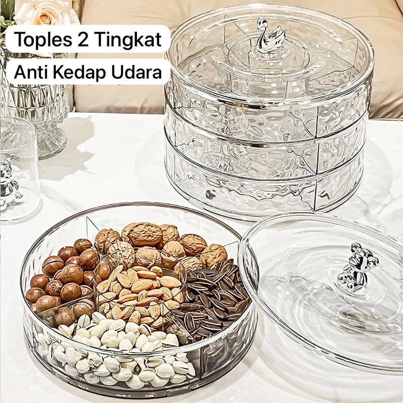 Toples Lebaran / Snack Tray / Toples Tingkat Bisa Putar / Toples Lebaran Tingkat / Toples Bulat/ Toples Mewah Kristal Se