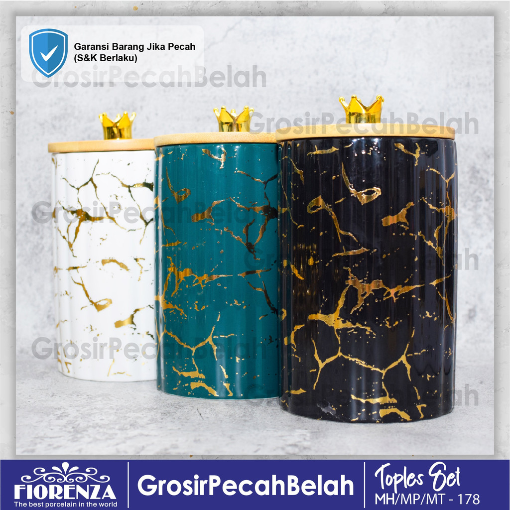 Toples Kue Makanan Keramik Set Dengan Rak Motif Marble Fiorenza 178
