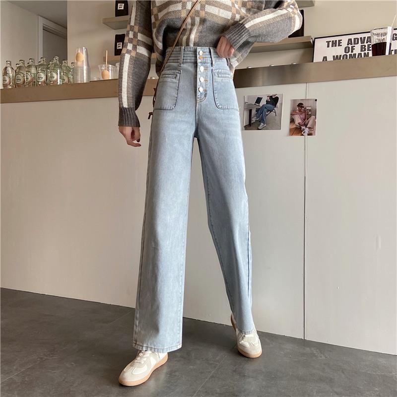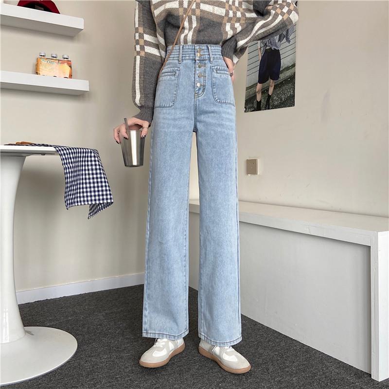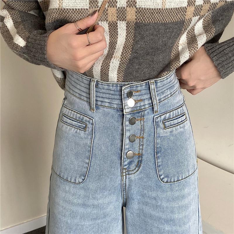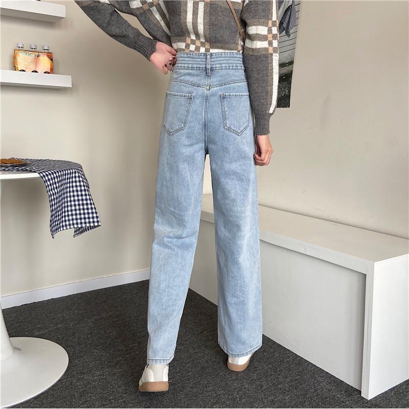 Celana Jeans Wanita Pinggang Tinggi Kaki Lebar