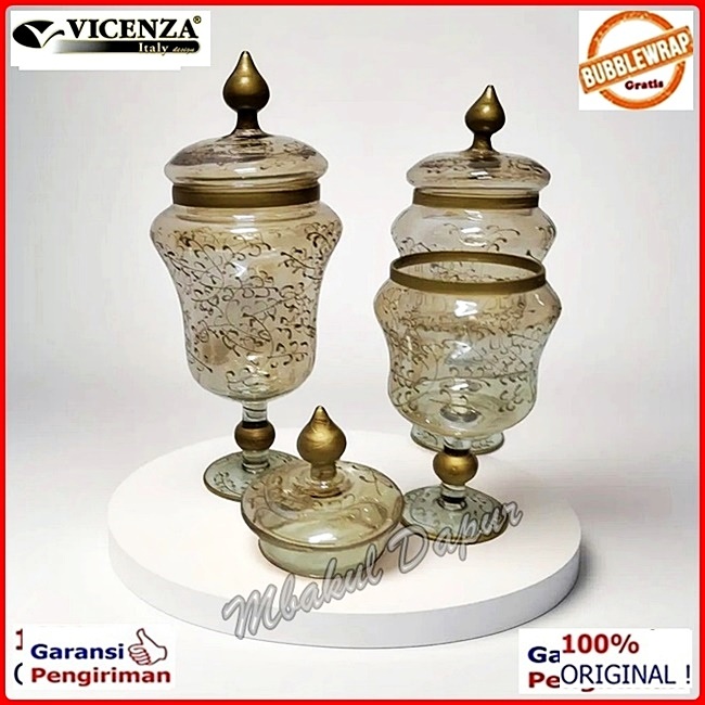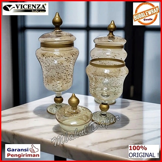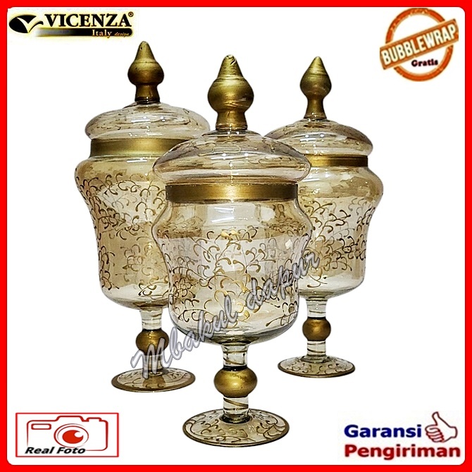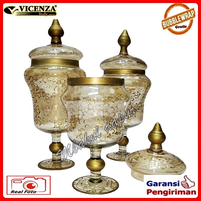 Toples Kaca Toples Turki Toples Pajangan Hand Drawing Look Set 3 Pc Vicenza Antik V 407