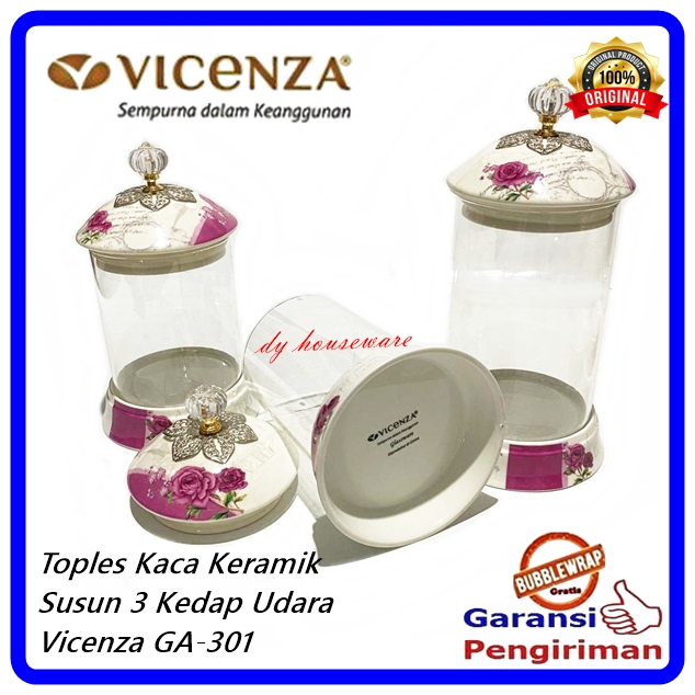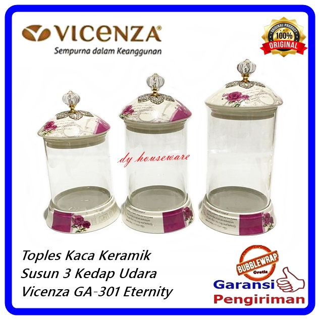 Toples Kaca Keramik 3 Tingkat Toples Permen 3 Susun Candy Jar Vicenza Original Ga-301