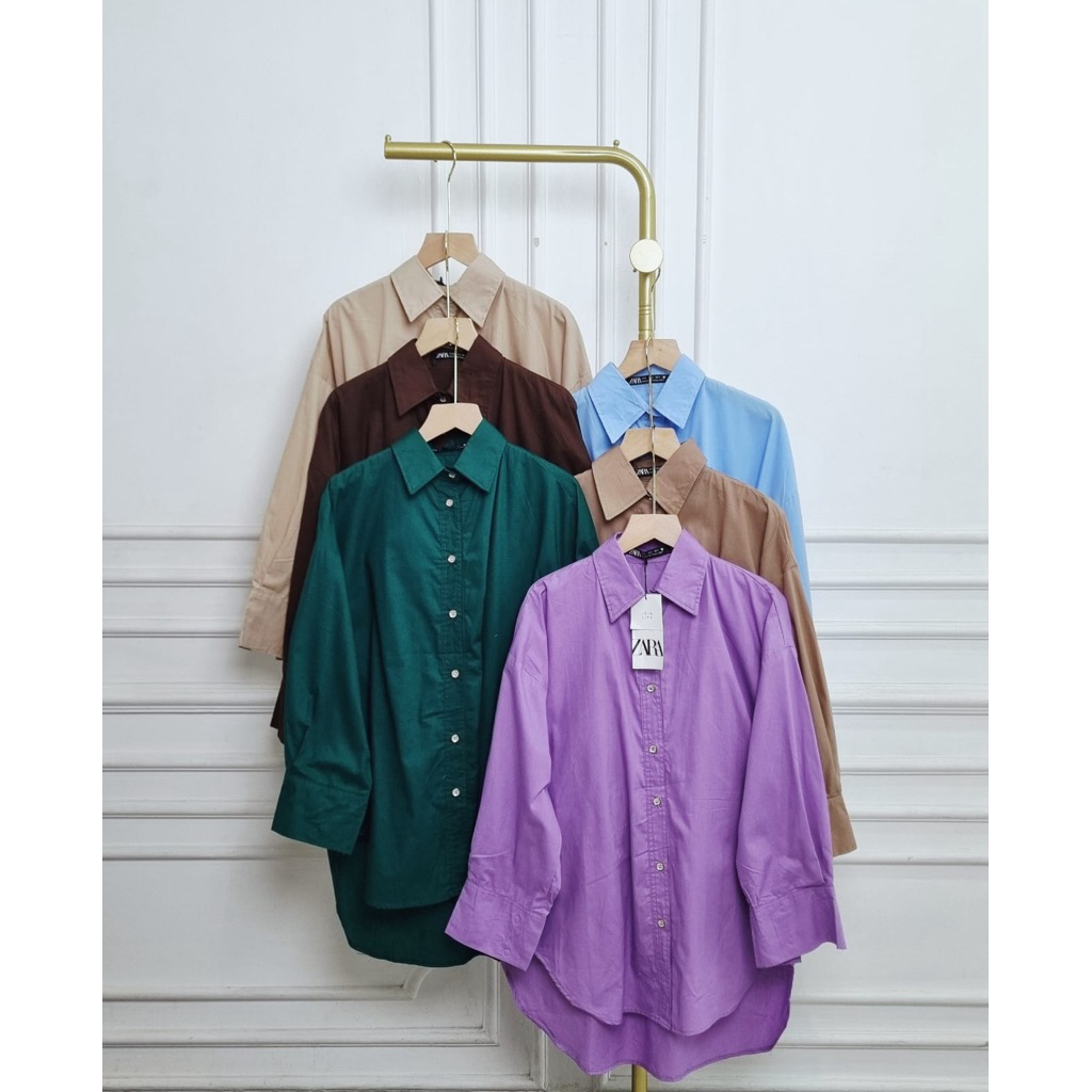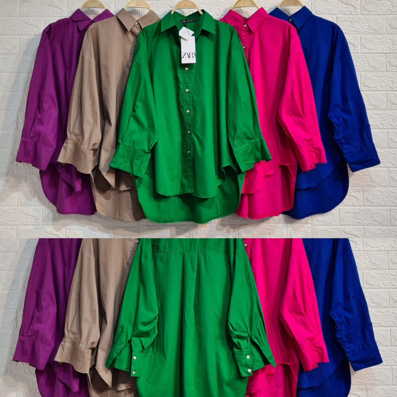 Kemeja los Wanita plin Zara Lengan Kancing Ukuran LD 120 cm Atasan Oversize Blouse Kerah Kerja