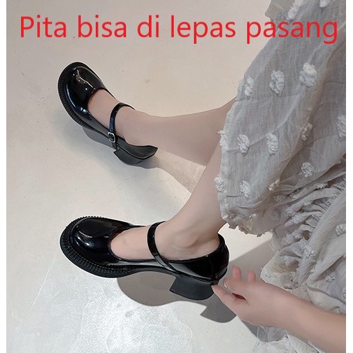 Findal Marry Jane Shoes Cantik Sepatu Docmart Wanita Mules Heels Kasual Cream Terbaru Ki-014