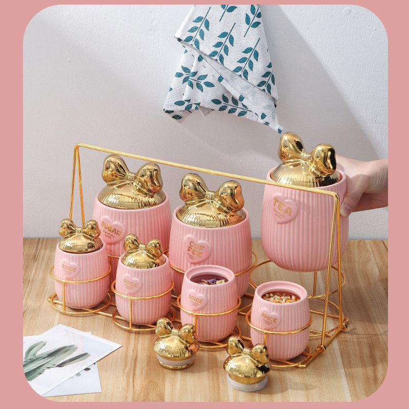 Toples Makanan Keramik Seasoning Jar Set Toples Penyimpanan Makanan Toples Lebaran Toples 1 Set Toples Keramik Aesthetic