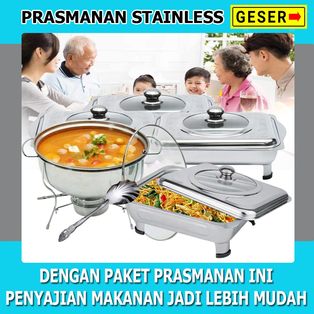 Paket Prasmanan Stainless Dan Warmer Stove Plus Sendok Paket Prasmanan Pesta Set 10Pcs
