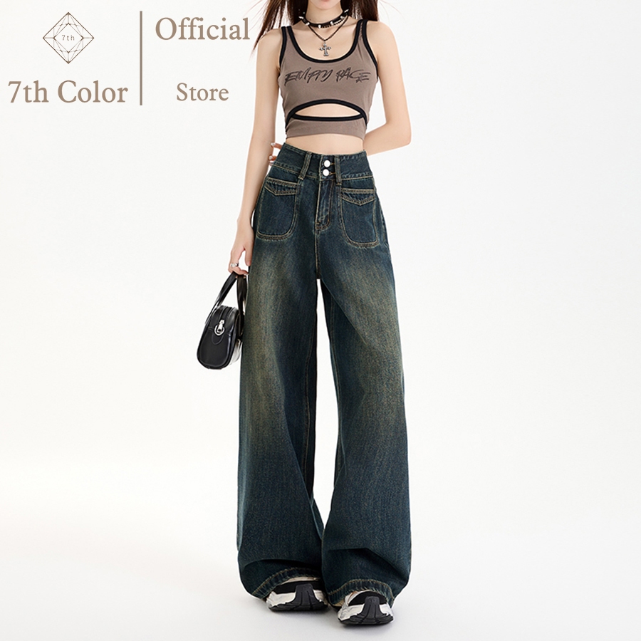 7th Color /Vintage Jeans Panjang Wanita Celana Korean Style Celana Kulot Denim