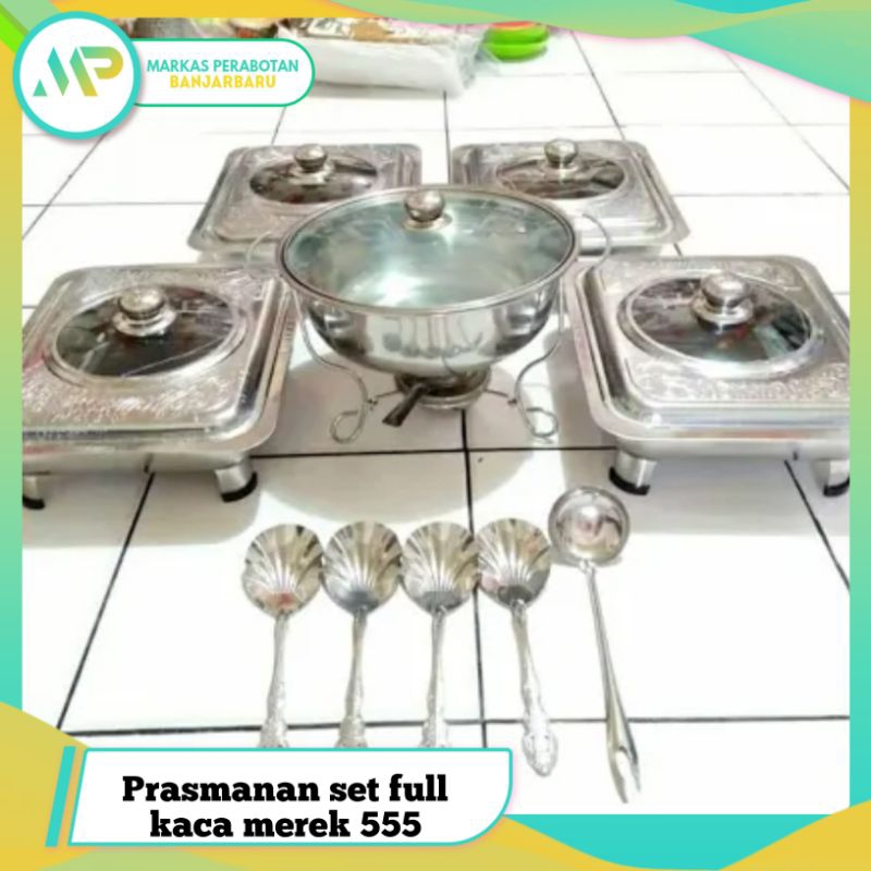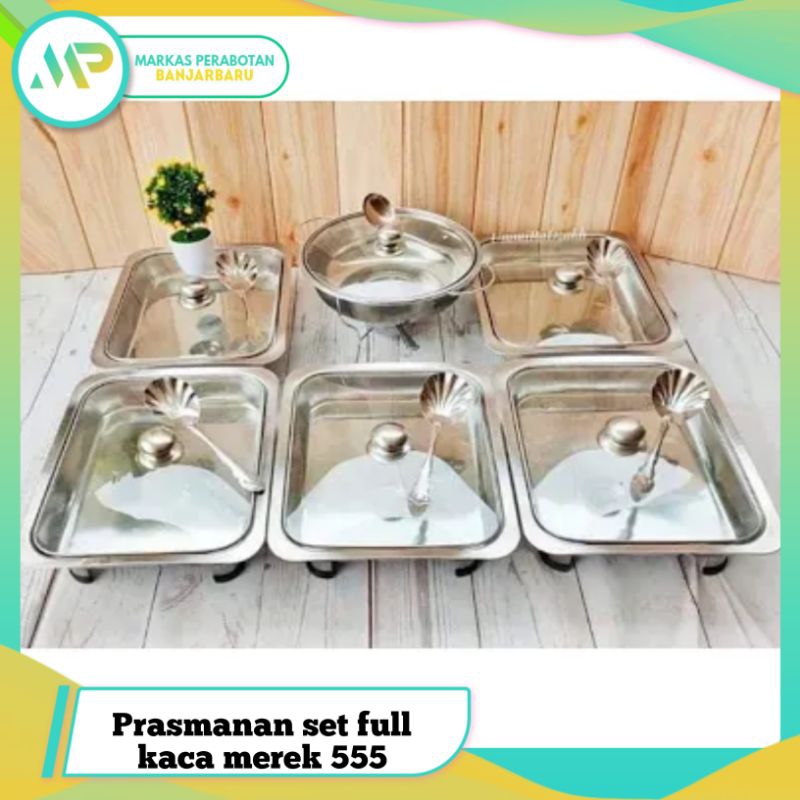 Prasmanan Kaca Full Set Merek 555 / Prasmanan Set Isi 6Pcs / Wadah Penyimpan Makanan Stainless