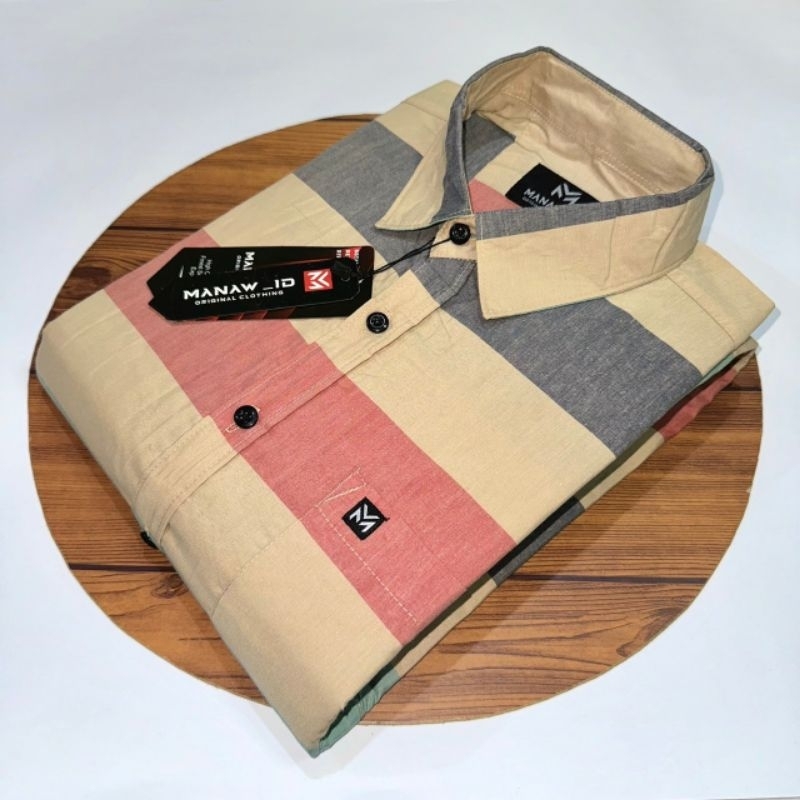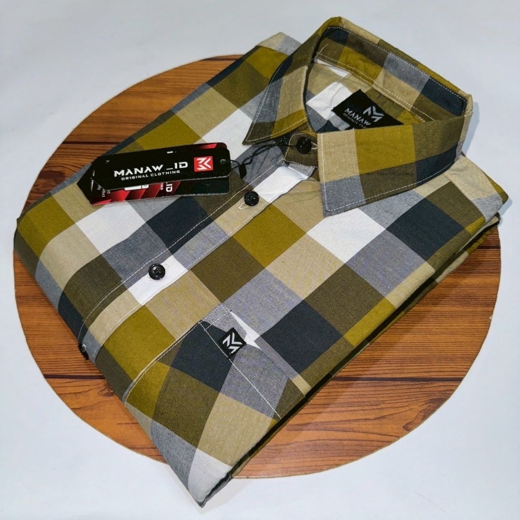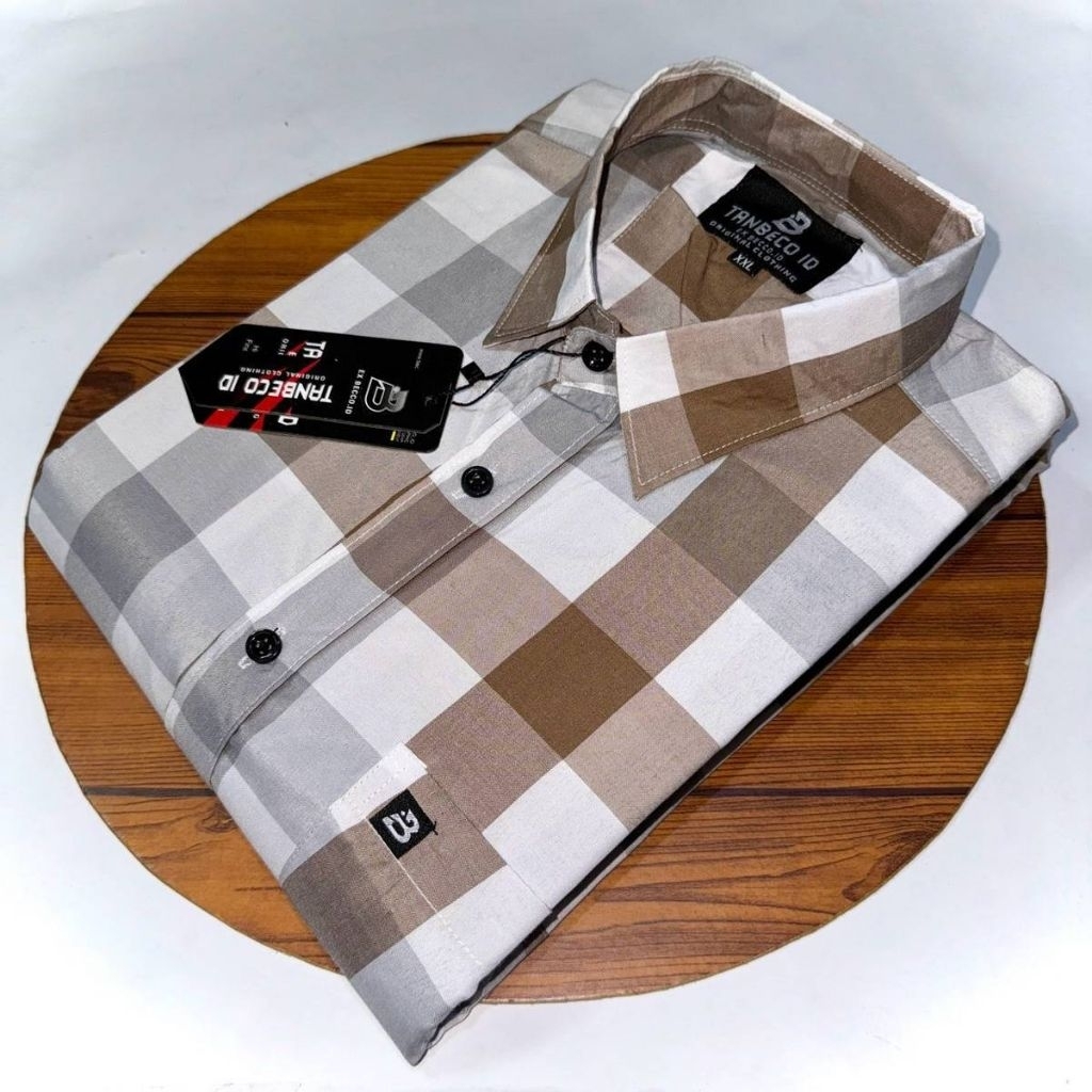 Kemeja Kotak Kotak Pria Lengan Pendek Kemeja Motif
