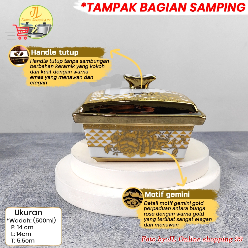 Vicenza Prasmanan Segi Kombinasi Isi 4 Motif Gemini + Tutup + Rak Porcelain Ceramic Type Cr-749 / Wadah Saji Rectanguler