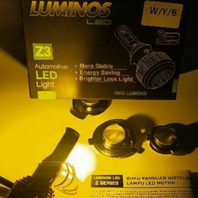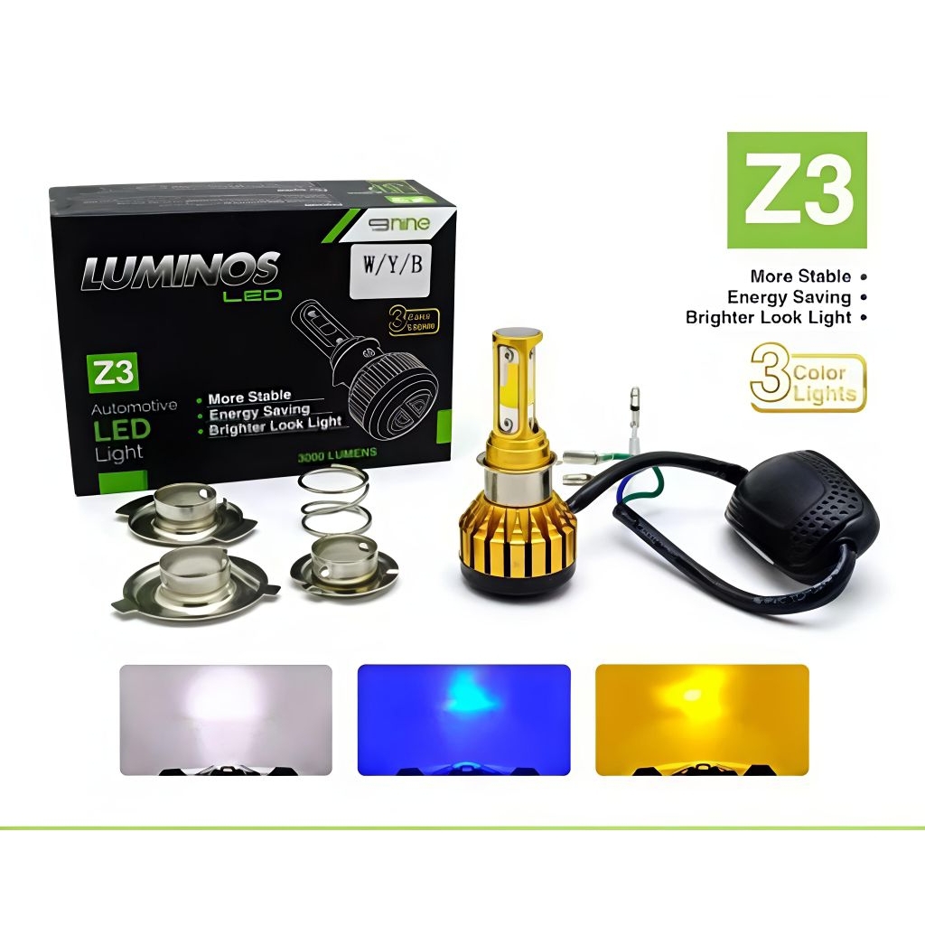 LAMPU LED UTAMA MOTOR H6 H7 H4 3 WARNA NINE LUXIMOS Z3 HI LOW SUPER TERANG 36WATT