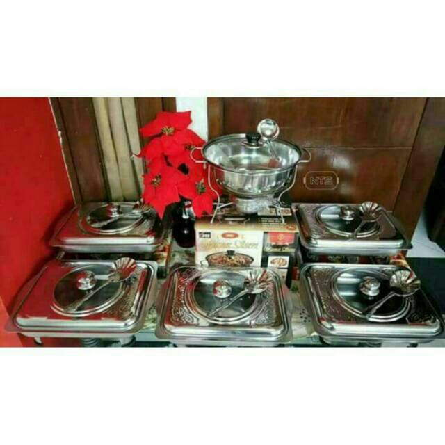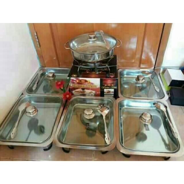 Rantangshop Prasmanan Set E 12In1 Sup Kuah Kotak Kaca Kombinasi Stainless 5Pc