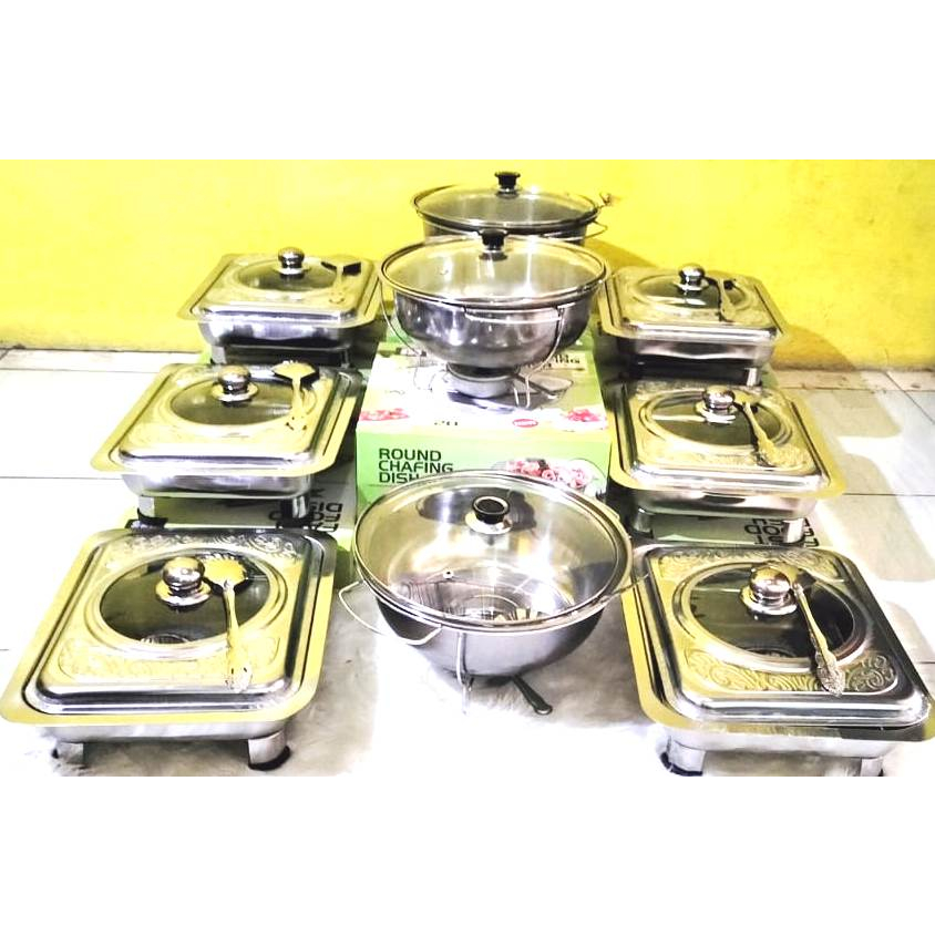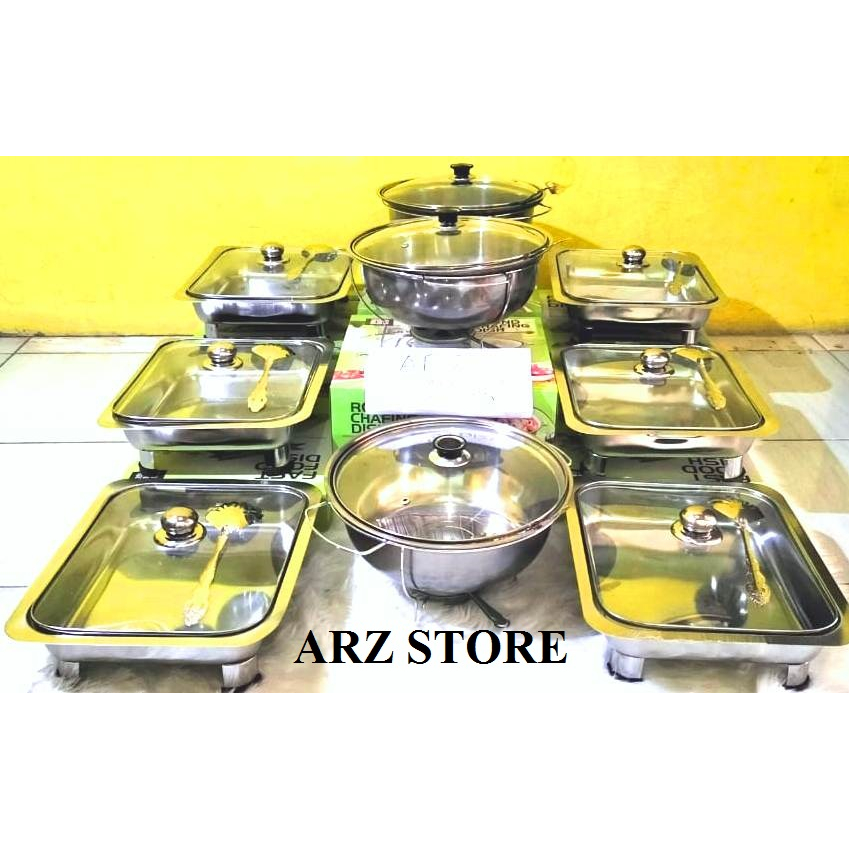 Arz Promo Wadah Saji Prasmanan Tempat Makan Set 6 Kotak + 3 Bulat Tutup Full / Semi / Batik Kaca Stainless Stell