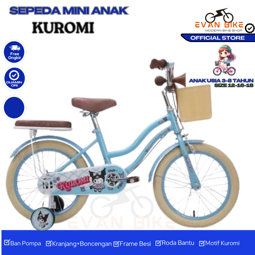 Sale Sepeda Anak Perempuan Kuromi Sanrio Ukuran 12 16 18 Inch Keranjang Usia 2-8 Tahun