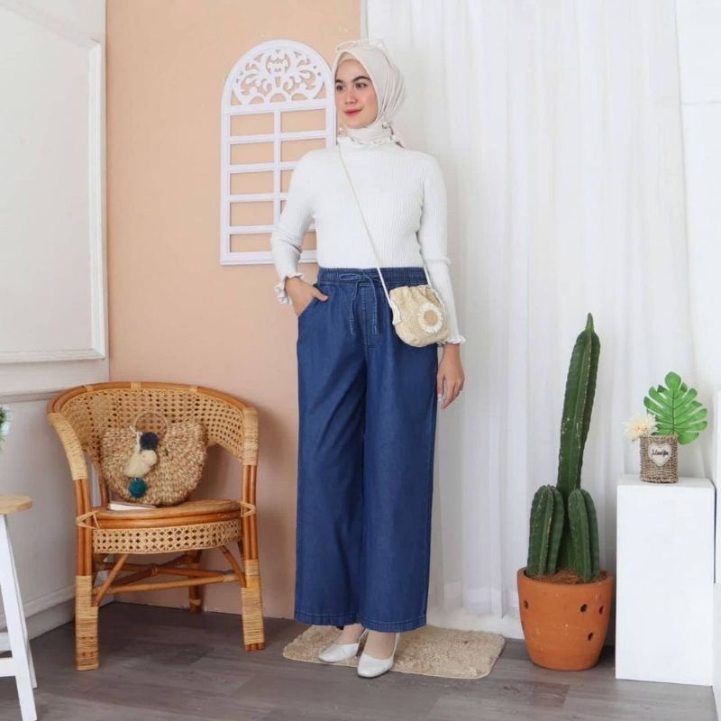 Jeans Kulot Masa Kini - Jeans Kulot Pinggang Karet - Jeans Kulot Jumbo - Tali Depan - Denim Kulot / KARETALLSIZE