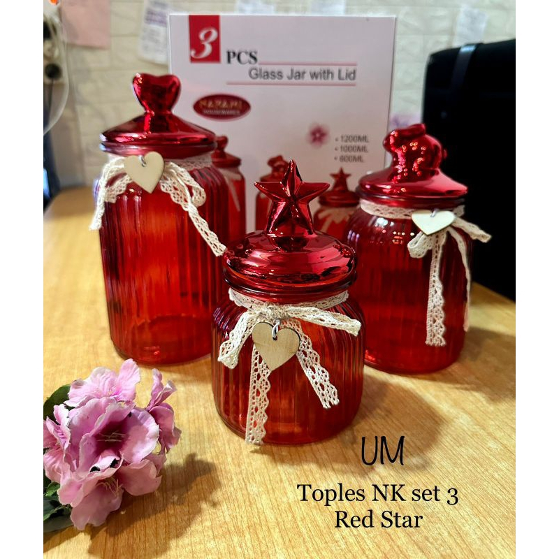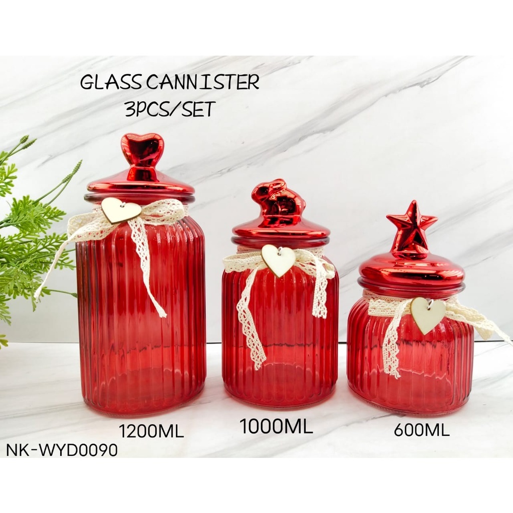 Nakami Toples Kaca Kue Kering Hias Set Nk-Wy00090 Merah/Nk-Wyd0091 Hijau 3 Pcs