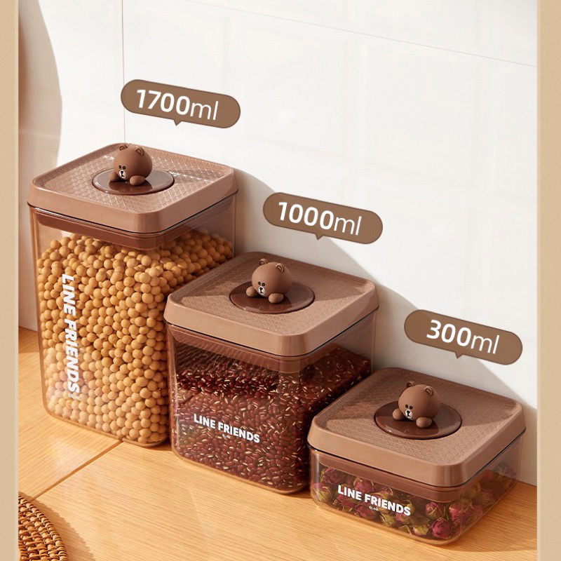 Brown Cannister Set | Line Friends Toples Kue Kering Kedap Udara Wadah Tempat Kotak Kue Unik Lucu | Toples Kue 3