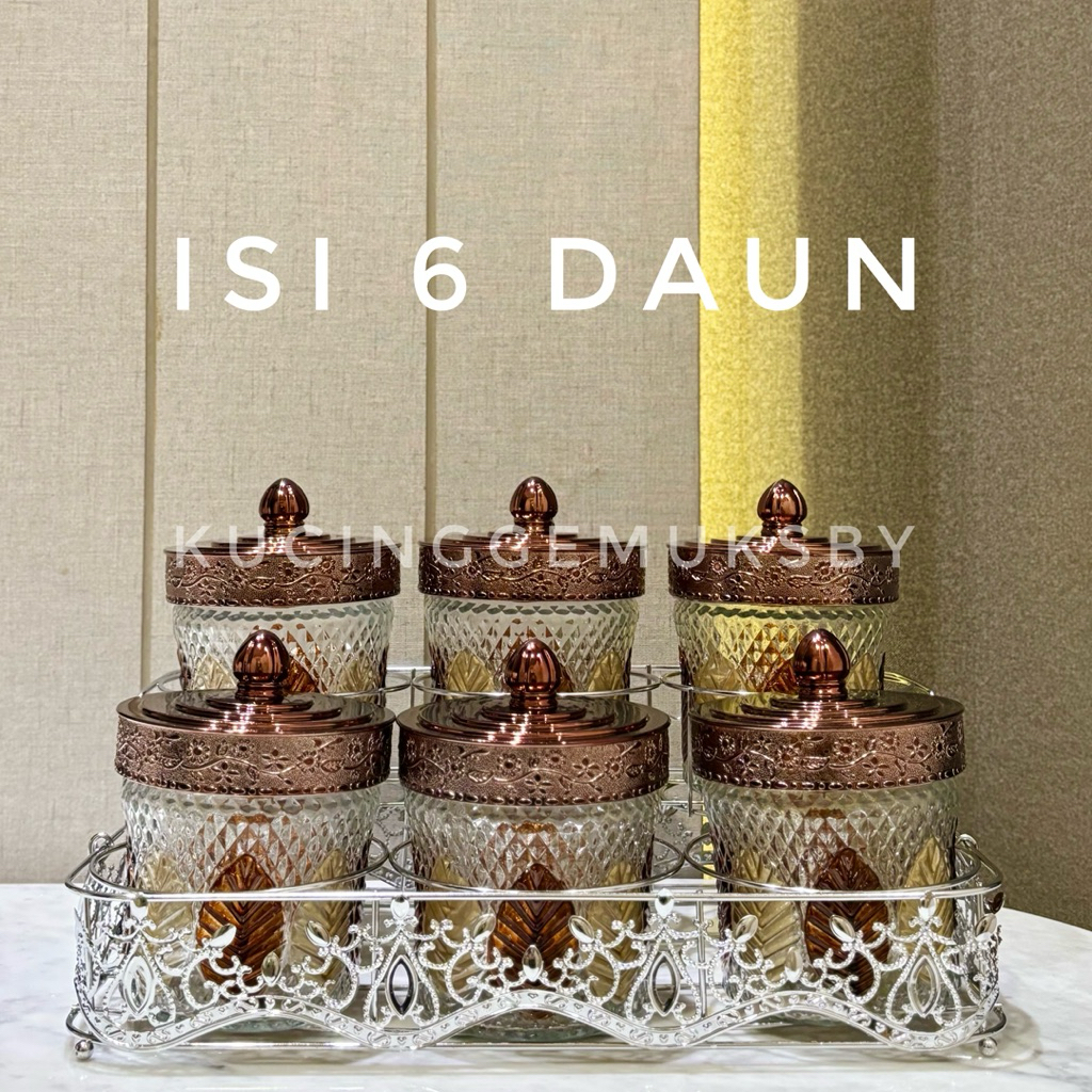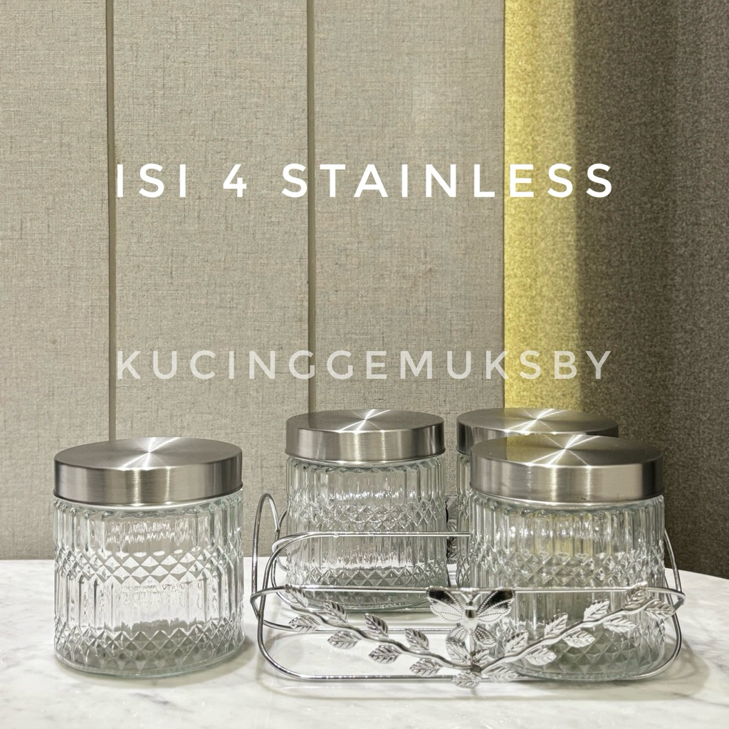 Toples Kaca Set Isi 6 Tutup Stainless + Rak. Cocok Untuk Lebaran, Natal, Imlek, Dll
