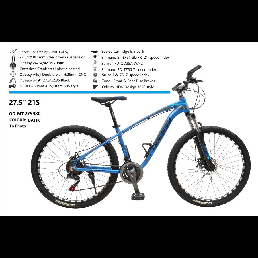 Sepeda Gunung Mtb Odessy Zenith Ukuran 27,5 Frame Alloy - 21 Speed Garansi Original