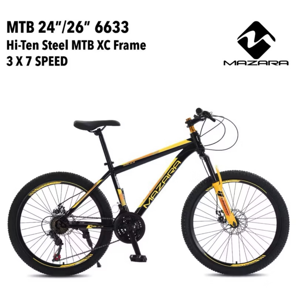 Sepeda Gunung 24 26 Inch Mtb Mazara (Rem Cakram) 3X7 Speed