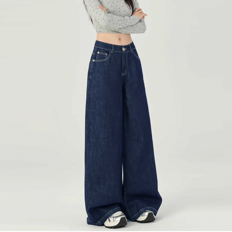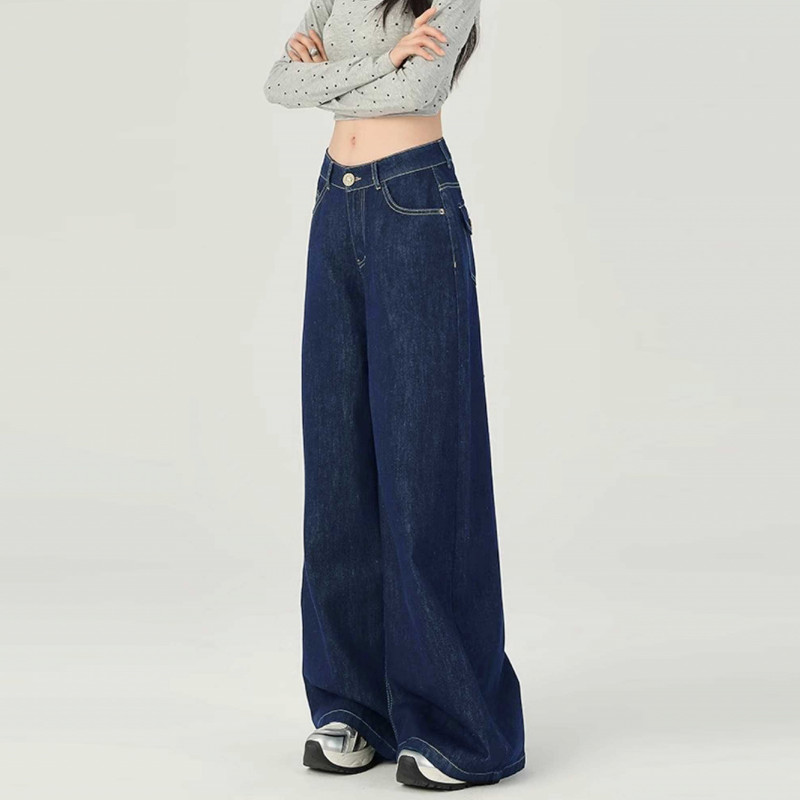 MEET.U S-7XL Plus Size Baggay Jeans Wanita Celana Denim Biru Kasual High Waist Wide Leg Jeans