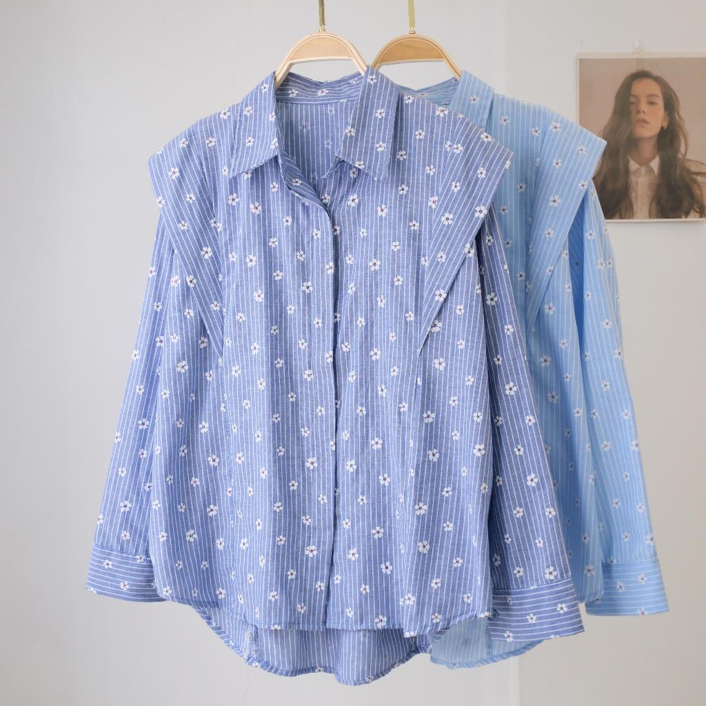 Kemeja wanita / kemeja salur / Atasan stripe korean style