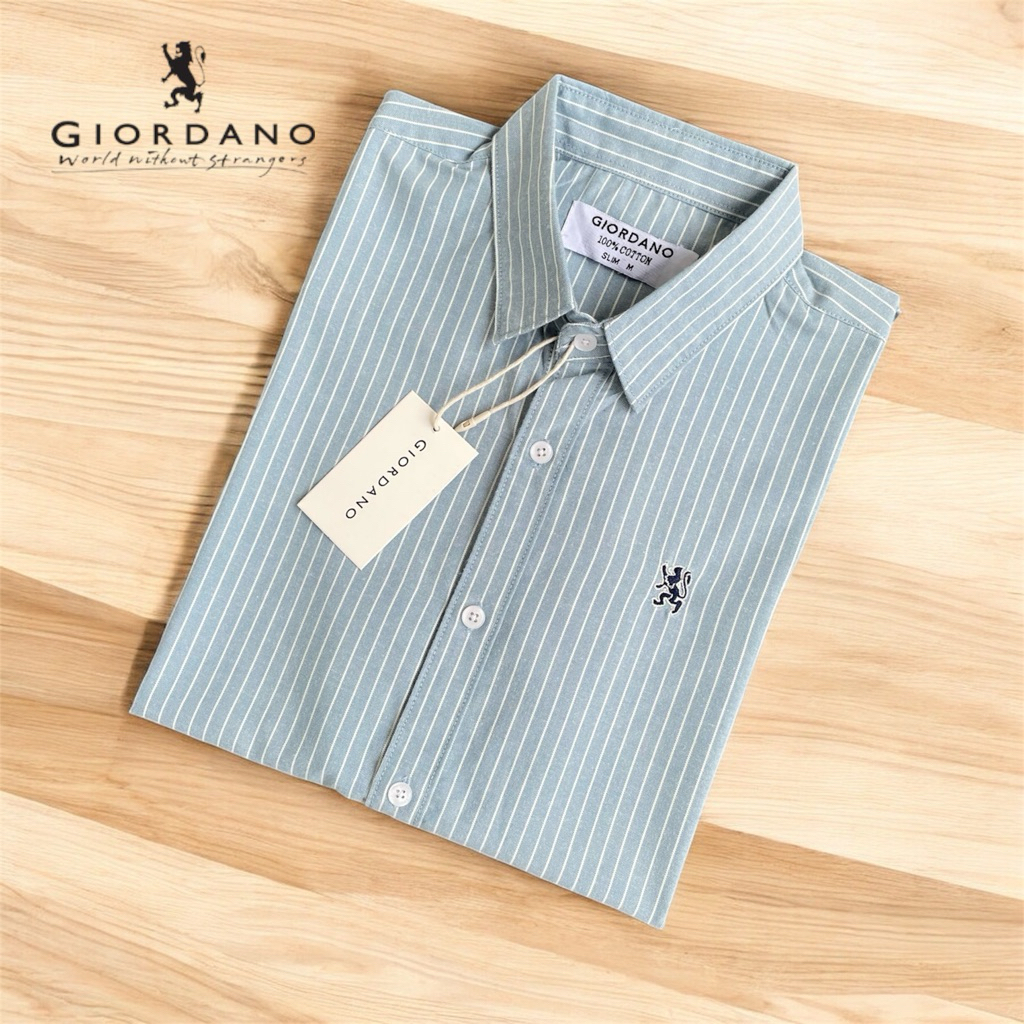 Giordano Kemeja Salur Pendek PR3M1UM Kemeja Pria Lengan Pendek Terbaru Kemeja Kerah Casual Kemeja Salur PR3M1UM Sli