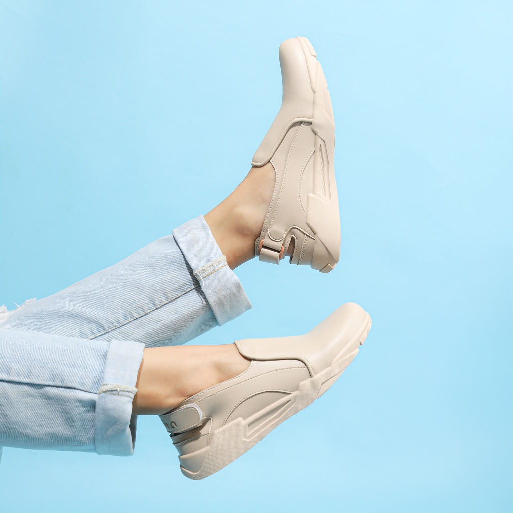 Elira Sepatu Slip-On Perekat Wanita Noel White Black Cream Slingback Women