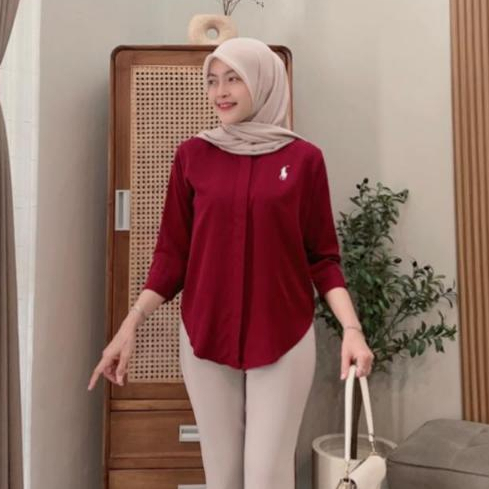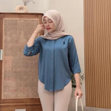 Kemeja Bordir Logo Atasan Wanita Rayon Twill Lengan 7/8 Terbaru Kemeja Wanita Oversize
