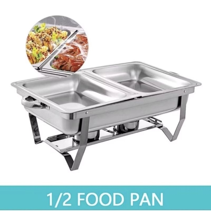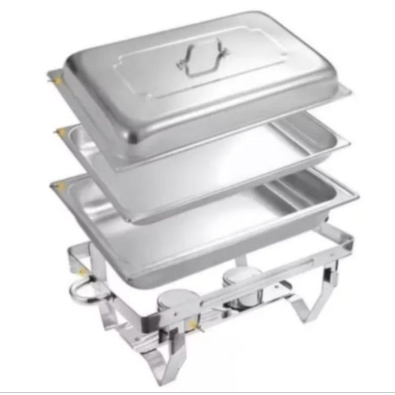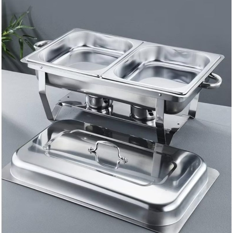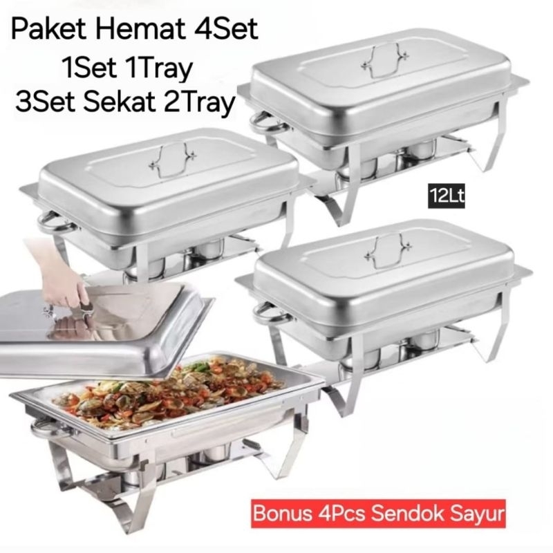 Chafing Dish / Prasmanan Segi Jumbo Paket 4Set (1Set Segi Jumbo 1Tray + 3Set Sekat 2Tray) Bonus 4Pcs Sensok Sayur